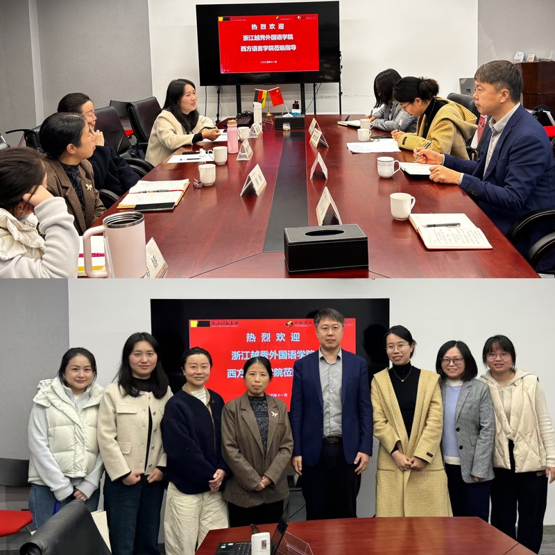 浙江越秀外国语学院赵吉鹏院长助理简要介绍了西方语言学院在国际化工作上的整体布局与推进方向;德语系主任周芳蓉副教授介绍了德语专业的基本情况,并重点围绕“专业转型方向、课程体系优化、师资科研发展、实践教学强化、国际交流拓展及学生综合素质提升”六大核心议题,与我院进行了深入而坦诚的探讨。